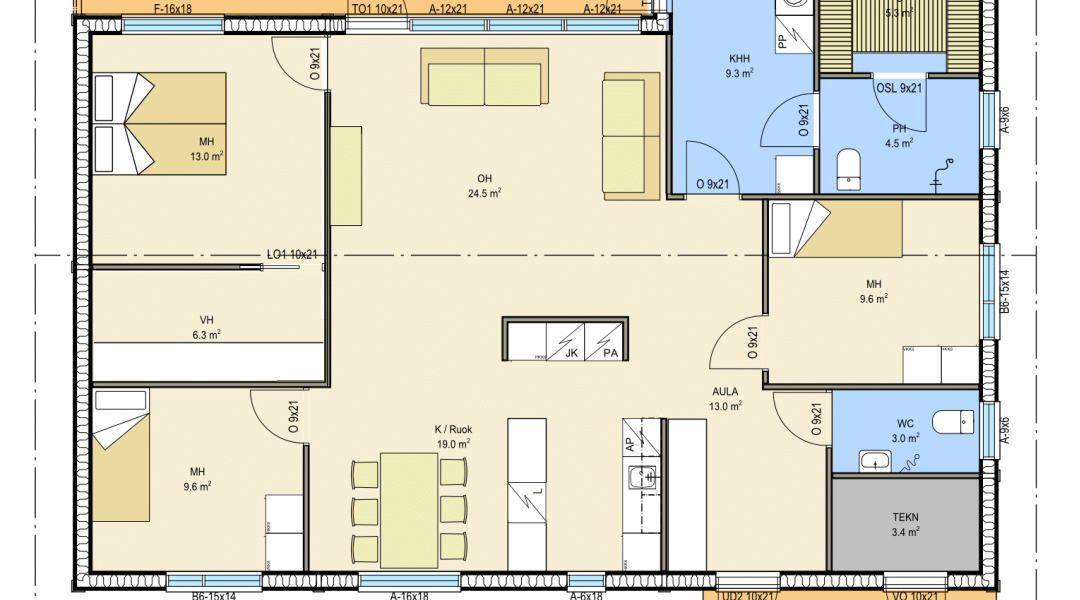 HAAVE on talomallisto jonka suuret ikkunat ja luonnonvalon hyödyntäminen luovat tunnelmaa. Selkeä ja moderni ulkomuoto murretulla harjakatolla ovat mallin suunnittelun lähtökohdat.