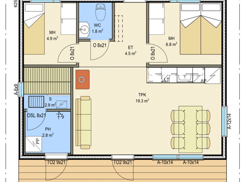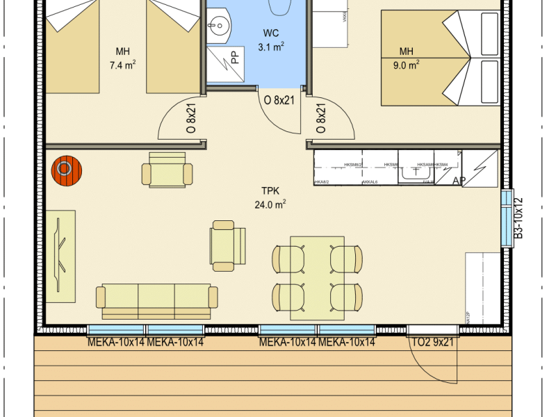 Kompaktin malliston isoilla terasseilla on tilaa oleskella vaikka isommallakin porukalla. Kustannustehokas KONTIOLUOMA sopii hyvin niin päämökiksi kuin saunarakennukseksi tai lisämajoitustarpeeseen.