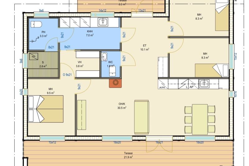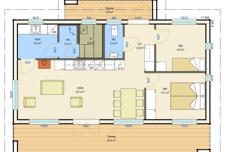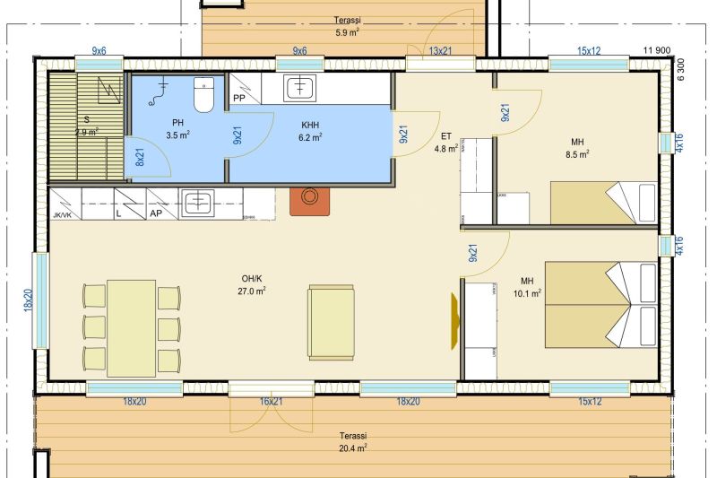 VALAKIA on yhdeksän eri kokoisen muovittoman, ekologisen ja energiatehokkaan omakotitalon kokonaisuus.